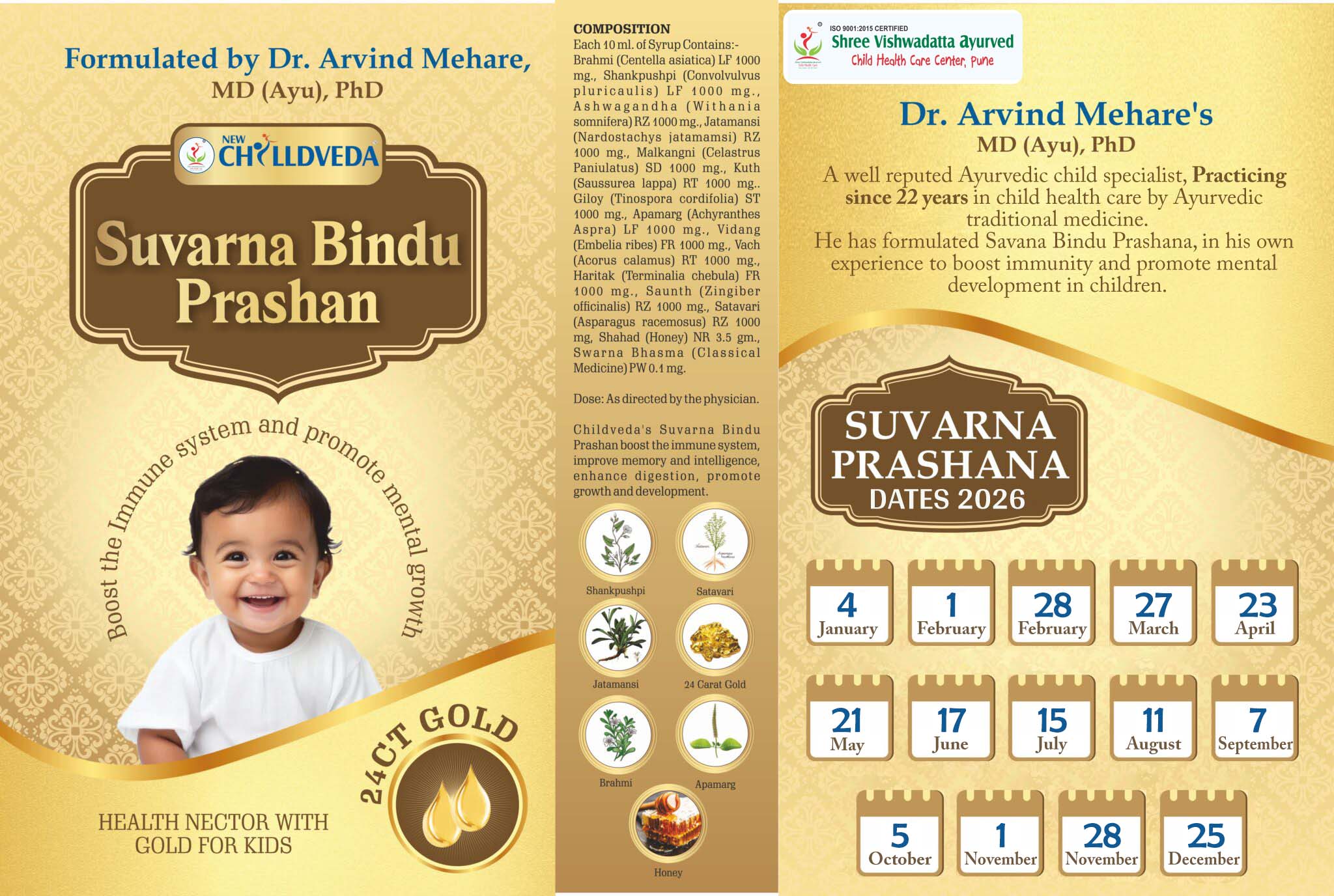 Anudina Suvarna Prashana (Daily Suvarna Prashana) : It is a daily dose of Suvarna Prashana for the immunity, intellectual, memory power of your child.